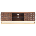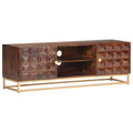 This stylish TV cabinet is meant to be an eye-catching addition to your interior. This lowboard is made of solid mango wood. This mango wood has the strength to bear the weight and stands the wear and tear of time. Thanks to its powder-coated iron legs, this beautifully-designed cabinet is stable, durable, and stunning. This TV stand provides ample space for storing your multimedia appliances, books, as well as other essentials.
