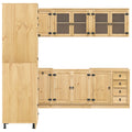 This Modern Cabinet offers an elegant solution to your storage needs, designed with a sleek rectangular shape and a contemporary flair. It's crafted to blend into any dining or living room setting, providing both functional and attractive storage. Whether you're a family looking for extra space or a professional seeking a stylish filing solution, this cabinet caters to your organizational demands. Solid Pine Construction: Built from solid pine wood, this cabinet promises longevity and a naturally appealing texture. The choice of pine ensures durability and an attractive finish that complements any setting, resisting warping and wear over time. Pine also offers a calming aesthetic, making it perfect for both contemporary and traditional spaces. Multiple Components: This versatile cabinet includes a series of well-crafted components: hinge doors, drawers, and shelves, each precisely designed to maximize storage efficiency. The combination of compartments and drawers provides flexibility for organizing varying items, from everyday utensils to special occasion cutlery. Thoughtful Design Elements: With finishings such as black metal loop handles and a modern rectangular shape, this cabinet integrates functionality with elegance. These features enhance both the user experience and the overall visual appeal, adding a subtle touch of sophistication to any room. Versatile Placement: Tailor-suited for dining or living rooms, this cabinet adapts to different environments with ease. Whether storing crockery, displaying decorative pieces, or managing everyday essentials, its design suits various organizational needs without compromising style. Access and Maintenance: Featuring easily accessible compartments, this cabinet simplifies the search and retrieval of items. Regular maintenance is minimal—secure tall furniture to the wall to prevent tipping, ensuring safety and prolonging the cabinet’s lifespan.