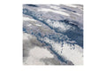 * The rug's vibrant color palette, which includes shades of grey, blue, and white, adds a touch of drama and sophistication to the space, while its subtle sheen gives it a sense of depth and visual interest.