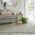 * The rug's wool blend construction makes it stain-resistant and easy to clean, with regular vacuuming and spot cleaning recommended for maintenance.
