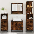 This stylish bathroom furniture set is an excellent addition to your bathroom, giving it a tidy and striking appearance! Stable and durable material: Engineered wood is a durable and stable material with a smooth surface that is resistant to moisture, warping, and splitting, making it a reliable choice for a variety of projects.Stable and long-lasting frame: The metal frame of the cabinet enhances your interior with an industrial style and provides exceptional durability, stability and resistance to corrosion.Ample storage space: This bathroom furniture offers ample storage space to keep your essentials well organised and within reach.Practical cabinet top: The top of the sink cabinet has a hole, so it is ideal for placing the sink.Wall-mounted function: The washroom mirror cabinet can be wall-mounted to save floor space, which makes it especially suitable for rooms with limited space. Warning:To prevent it from tipping over, this product must be used with the provided wall attachment device. Good to know:Screws and plugs for inside the wall are not included. We advise to find and use screws and plugs suitable specifically for your walls. If you're not sure, you can consult with a professional. Please read and follow each step of the instructions.