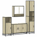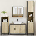 This stylish bathroom furniture set is an excellent addition to your bathroom, giving it a tidy and striking appearance! Stable and durable material: Engineered wood is a durable and stable material with a smooth surface that is resistant to moisture, warping, and splitting, making it a reliable choice for a variety of projects.Stable and long-lasting frame: The metal frame of the cabinet enhances your interior with an industrial style and provides exceptional durability, stability and resistance to corrosion.Ample storage space: This bathroom furniture offers ample storage space to keep your essentials well organised and within reach.Practical cabinet top: The top of the sink cabinet has a hole, so it is ideal for placing the sink.Wall-mounted function: The washroom mirror cabinet can be wall-mounted to save floor space, which makes it especially suitable for rooms with limited space. Warning:To prevent it from tipping over, this product must be used with the provided wall attachment device. Good to know:Screws and plugs for inside the wall are not included. We advise to find and use screws and plugs suitable specifically for your walls. If you're not sure, you can consult with a professional. Please read and follow each step of the instructions.