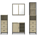This stylish bathroom furniture set is an excellent addition to your bathroom, giving it a tidy and striking appearance! Stable and durable material: Engineered wood is a durable and stable material with a smooth surface that is resistant to moisture, warping, and splitting, making it a reliable choice for a variety of projects.Stable and long-lasting frame: The metal frame of the cabinet enhances your interior with an industrial style and provides exceptional durability, stability and resistance to corrosion.Ample storage space: This bathroom furniture offers ample storage space to keep your essentials well organised and within reach.Practical cabinet top: The top of the sink cabinet has a hole, so it is ideal for placing the sink.Wall-mounted function: The washroom mirror cabinet can be wall-mounted to save floor space, which makes it especially suitable for rooms with limited space. Warning:To prevent it from tipping over, this product must be used with the provided wall attachment device. Good to know:Screws and plugs for inside the wall are not included. We advise to find and use screws and plugs suitable specifically for your walls. If you're not sure, you can consult with a professional. Please read and follow each step of the instructions.