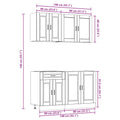 This 4-piece kitchen cabinet set, with its elegant design, optimises your kitchen space and provides ample storage space for your personal belongings! Stable and durable material: Engineered wood is a durable and stable material with a smooth surface that is resistant to moisture, warping, and splitting, making it a reliable choice for a variety of projects.Ample storage space: The kitchen cabinet set has many compartments, and offers sufficient space to store bowls, plates, pots, and other kitchen appliances.Adjustable feet: The bottom cabinets feature adjustable feet that can be adjusted in height to suit your kitchen layout.Easy to maintain: Thanks to its smooth surface, these kitchen cabinets are easy to clean with a damp cloth and require less maintenance. Warning:To prevent it from tipping over, this product must be used with the provided wall attachment device. Good to know:Screw(s) and plug(s) for inside the wall are not included. Seek and use screw(s) and plug(s) suitable for your walls. If you are uncertain, seek professional advice. Read and follow each step of the instruction carefully.The worktop, sink and faucet are not included in the delivery.