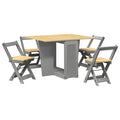 Create a warm and inviting place to start the day or enjoy a great meal together with this butterfly dining set! Durable and long-lasting: This dining set is made from durable pinewood and engineered wood, ensuring stability and sturdiness for long-lasting use.Extendable and foldable: The butterfly table features a foldable and extendable drop-leaf tabletop, providing extra space when needed and easily folding down when not in use. The chairs are also foldable, making storage and transport convenient.Compact storage & Space-saving: The table features a storage function that allows you to neatly store the folding chairs underneath when not in use, saving valuable space.Versatile use: With its modern drop-leaf design, this table functions as both a dining table and a convenient workspace for a computer, as well as a charming breakfast table. Its versatility makes it an excellent addition to any space.Easy maintenance: Thanks to its smooth surface, the dining set is easy to clean with a damp cloth and requires less maintenance.