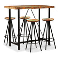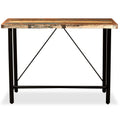 This cool bar set has an industrial look and will make a distinctive addition to any home, bar or restaurant. The bar table and stools are made of solid reclaimed wood, which means that they have the characteristics of different woods like teak, mango wood, acacia, etc. Reclaimed wood is solid, stable, durable and beautiful. Signs of wear give each piece a unique look and the steel legs add to the spectacular industrial style. Every step of the construction process is carried out with the greatest care, be it recombining, polishing, painting or lacquering. Delivery includes 1 bar table and 4 bar stools. Assembly is easy. Important note: The wood grains and colours may vary from piece to piece, making each piece unique and slightly different from the next. The delivery is random, ensuring the exclusivity and individuality of your product.