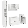 This sleek and modern Engineered Wood Bathroom Furniture Set is a smart way to upgrade any bathroom. Its simple and practical design caters to the needs of any home looking for style and functionality. At 192 cm tall, it sports a smooth matte finish and a rectangular shape, making it fit right into all kinds of bathroom styles. Its elegant look and practicality are perfect for a range of personal or family needs, offering great storage and organization options. High-Quality Material: The furniture set is made from engineered wood, known for its strength and durability. It stands up to the humidity often found in bathrooms, keeping its good looks and function for ages. The smooth texture resists stains and adds a classy touch. Comprehensive Storage Unit: Packed with various storage options, like shelves and hinge doors, this set gives you loads of space to neatly organise your bathroom essentials. The well-placed compartments and drawers mean everything has its spot and is easy to grab when you need it. Functional Components: The engineered wood frame and doors, along with sturdy shelves, offer a neat finish and solid function. The matte-finished bar handles add a modern vibe, while the stable post-leg design supports even the heaviest items you might store. Practical Design: The modern style shines through with a smooth, minimalist layout. It’s got clean lines that go well with any bathroom aesthetics. Its subtle design makes it versatile, suiting different styles and floor plans effortlessly. Simple Care Instructions: Keeping the furniture looking fresh is a breeze – just wipe it down with a damp cloth. This straightforward care keeps surfaces sparkling and enhances their lifespan, giving you good value for ages.