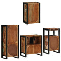 This Wooden Bathroom Furniture Set is a fab addition to any bathroom. It's designed with rustic charm that shows off its natural beauty, thanks to its great craftsmanship. It’s stylish yet super practical for organizing your bathroom bits and bobs, helping to create a chilled vibe. Whether you're kitting out a busy family bathroom or a serene en suite, this set will transform your space with its rugged elegance, balancing function with style. Perfect for anyone after both looks and practicality. Materials: The Wooden Bathroom Furniture Set combines wood and black metal for a lovely mix of rustic charm and modern toughness. The metal legs and frame make it sturdy, adding an industrial touch. The wooden surface brings a nice natural element to your bathroom, blending style with functionality. Included Components: This set has two large bathroom cabinets and two smaller ones, with options for floor-standing or wall-mounted setups. The wall-mounted design saves space and keeps things organized, letting you pick what works best for you. Each cabinet features smooth flush doors and bar handles for easy access and a super sleek appearance. Features / Function / Design: With various storage options, the set makes managing space easy, perfect for smaller areas without skimping on storage. The flush doors are easy to clean, while the square legs provide solid support for each piece. These design details create a smooth blend of practicality and elegance in any home. Recommended Uses: Great for family bathrooms or solo en suites, this furniture set comes in many configurations to fit different bathroom sizes. Its flexible design meets various needs, whether you need to store toiletries, towels, or other bathroom bits. Its adaptable style fits in with all sorts of décor, making it a must-have for any home. Care & Maintenance: To keep it looking good, just wipe the surfaces regularly with a dry cloth to take off dust and moisture. This keeps the furniture in top shape and continues to brighten up your bathroom. A quick clean every now and then will keep the set looking fresh and welcoming.