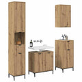 This elegant Engineered Wood Bathroom Furniture Set enhances any bathroom space with modern design efficiency and high functionality. Crafted for those who value streamlined style and practical storage solutions, this furniture set offers a balanced mix of aesthetic simplicity and adaptability for diverse spaces. Its minimalistic form and versatile storage options make it the perfect solution for any-sized bathroom, seamlessly integrating with a variety of interior designs. Materials: Thoughtfully constructed from engineered wood, this set balances stability and style, bringing a sleek design to the forefront. Engineered wood is chosen for its uniform surface, moisture resistance, and durability, providing a refined look that enhances the overall bathroom environment while simplifying care routines. Included Components: The set delivers comprehensive storage solutions with a wall-mounted sink cabinet, bathroom cabinet, bathroom wall cabinet, and a high cabinet. Each component delivers user-friendly access, enhancing bathroom organization and space management. Features /Function /Design: Designed for modern aesthetics, the flush doors with smooth surfaces and bar handles deliver a refined, seamless appearance. Each piece lends a clean, cohesive look to any bathroom space, supporting a tidy and organized environment. Recommended Uses: Perfect for maximizing bathroom efficiency, this furniture set supports varied storage needs with convenient partitioning, making it an ideal choice for small apartments, family homes, or guest bathrooms. Its sleek design integrates effortlessly into any modern décor. Care &Maintenance: Maintenance is stress-free. To retain its clean, finished look, simply wipe surfaces with a damp cloth regularly. The engineered wood construction ensures longevity through simple, minimalistic care.