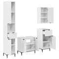 This elegant Engineered Wood Bathroom Furniture Set enhances any bathroom space with modern design efficiency and high functionality. Crafted for those who value streamlined style and practical storage solutions, this furniture set offers a balanced mix of aesthetic simplicity and adaptability for diverse spaces. Its minimalistic form and versatile storage options make it the perfect solution for any-sized bathroom, seamlessly integrating with a variety of interior designs. Materials: Thoughtfully constructed from engineered wood, this set balances stability and style, bringing a sleek design to the forefront. Engineered wood is chosen for its uniform surface, moisture resistance, and durability, providing a refined look that enhances the overall bathroom environment while simplifying care routines. Included Components: The set delivers comprehensive storage solutions with a wall-mounted sink cabinet, bathroom cabinet, bathroom wall cabinet, and a high cabinet. Each component delivers user-friendly access, enhancing bathroom organization and space management. Features /Function /Design: Designed for modern aesthetics, the flush doors with smooth surfaces and bar handles deliver a refined, seamless appearance. Each piece lends a clean, cohesive look to any bathroom space, supporting a tidy and organized environment. Recommended Uses: Perfect for maximizing bathroom efficiency, this furniture set supports varied storage needs with convenient partitioning, making it an ideal choice for small apartments, family homes, or guest bathrooms. Its sleek design integrates effortlessly into any modern décor. Care &Maintenance: Maintenance is stress-free. To retain its clean, finished look, simply wipe surfaces with a damp cloth regularly. The engineered wood construction ensures longevity through simple, minimalistic care.