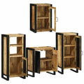 Check out this Wooden Bathroom Furniture Set – it blends practicality with rustic charm, making it perfect for jazzing up any bathroom. Its well-crafted rectangular shape shows off the beauty of natural materials, giving your bathroom a warm and inviting feel that balances old-school and new-age styles perfectly. Materials & Build: The set’s got a tough metal frame with a sleek black finish, giving it that structured modern look. The strength of the build ensures it'll last ages, while the rustic design adds a classy touch to any bathroom. Components Included: You'll get a large and a small cabinet, plus a wall-mounted unit, all designed to work together for a neat storage solution. They’re easy to put up on the wall, making ideal use of space, especially if you're in an apartment or a smaller home. Functional Design: The cabinets have smooth flush doors that open quietly, making them easy to use. Their simple but stylish design means you can grab what you need without a hassle while keeping the bathroom tidy. Versatile Use: Perfect for any bathroom, these units can neatly organize towels, toiletries, and other necessities. The rustic style lifts the look of simple bathrooms, providing both beauty and practicality. Care & Maintenance: Keep the furniture looking good by giving it a regular wipe with a dry cloth to catch dust and dirt. Steer clear of harsh chemicals to keep the finish fresh for ages.