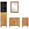 This wooden bathroom furniture set brings together rustic style and solid functionality, making any bathroom feel like a stylish retreat. Built from sturdy mango wood, it fits smoothly into different layouts while offering loads of storage and a touch of rugged beauty. Solid Mango Wood Material: This furniture set is crafted from solid mango wood, showcasing its natural beauty with unique grain patterns. It’s tough and built to last, making sure it looks great and works well for years. Plane Mirror Type: The flat mirror adds both style and convenience to your bathroom. Its simple design gives accurate reflections, perfect for personal grooming and a bit of decoration. It’s simple and effective for everyday use. Ample Storage Capacity: With various storage options like a sink cabinet and two additional cabinets, this set meets all your organizational needs. Drawers and door compartments keep your essentials tucked away, reducing clutter and making the most of your space. Wall-Mounted Installation: This clever design saves space by mounting on the wall, making your bathroom feel more open and streamlined. Easy Maintenance: Just a quick wipe with a dry cloth keeps everything looking sharp. The mango wood resists wear, so it stays looking good over time without much fuss.