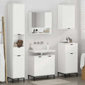 This elegant Engineered Wood Bathroom Furniture Set enhances any bathroom space with modern design efficiency and high functionality. Crafted for those who value streamlined style and practical storage solutions, this furniture set offers a balanced mix of aesthetic simplicity and adaptability for diverse spaces. Its minimalistic form and versatile storage options make it the perfect solution for any-sized bathroom, seamlessly integrating with a variety of interior designs. Materials: Thoughtfully constructed from engineered wood, this set balances stability and style, bringing a sleek design to the forefront. Engineered wood is chosen for its uniform surface, moisture resistance, and durability, providing a refined look that enhances the overall bathroom environment while simplifying care routines. Included Components: The set delivers comprehensive storage solutions with a wall-mounted sink cabinet, bathroom cabinet, bathroom wall cabinet, and a high cabinet. Each component delivers user-friendly access, enhancing bathroom organization and space management. Features /Function /Design: Designed for modern aesthetics, the flush doors with smooth surfaces and bar handles deliver a refined, seamless appearance. Each piece lends a clean, cohesive look to any bathroom space, supporting a tidy and organized environment. Recommended Uses: Perfect for maximizing bathroom efficiency, this furniture set supports varied storage needs with convenient partitioning, making it an ideal choice for small apartments, family homes, or guest bathrooms. Its sleek design integrates effortlessly into any modern décor. Care &Maintenance: Maintenance is stress-free. To retain its clean, finished look, simply wipe surfaces with a damp cloth regularly. The engineered wood construction ensures longevity through simple, minimalistic care.