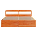 Get a better restful night's sleep from this bed frame! It makes a welcoming addition to any bedroom. Stable and long-lasting frame: Solid pinewood is known for its strength and durability. Its straight grains and distinctive knots contribute to its rustic charm.Slatted base for optimal support: The bed frame is equipped with a slatted base for support and breathability for your mattress.Ample storage space: This sleek headboard of the bed features three convenient shelves, offering ample storage space to keep all your nighttime essentials within easy reach.Freestanding headboard: The freestanding headboard offers a hassle-free solution for effortless placement and repositioning without the need for wall installation. Good to know:A mattress is not included with this bed. We do offer a various selection of mattresses. You can check our shop for a matching mattress.
