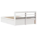 Get a better restful night's sleep from this bed frame! It makes a welcoming addition to any bedroom. Stable and long-lasting frame: Solid pinewood is known for its strength and durability. Its straight grains and distinctive knots contribute to its rustic charm.Slatted base for optimal support: The bed frame is equipped with a slatted base for support and breathability for your mattress.Ample storage space: This sleek headboard of the bed features three convenient shelves, offering ample storage space to keep all your nighttime essentials within easy reach.Freestanding headboard: The freestanding headboard offers a hassle-free solution for effortless placement and repositioning without the need for wall installation. Good to know:A mattress is not included with this bed. We do offer a various selection of mattresses. You can check our shop for a matching mattress.