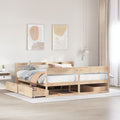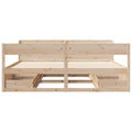 Get a better restful night's sleep from this bed frame! It makes a welcoming addition to any bedroom. Stable and long-lasting frame: Solid pinewood is known for its strength and durability. Its straight grains and distinctive knots contribute to its rustic charm.Slatted base for optimal support: The bed frame is equipped with a slatted base for support and breathability for your mattress.Make full use of space: This bed frame features four drawers underneath, providing storage for items like extra bedding, seasonal clothing, and toys.Ample storage space: This sleek headboard of the bed features three convenient shelves, offering ample storage space to keep all your nighttime essentials within easy reach.Freestanding headboard: The freestanding headboard offers a hassle-free solution for effortless placement and repositioning without the need for wall installation. Good to know:A mattress is not included with this bed. We do offer a various selection of mattresses. You can check our shop for a matching mattress.