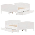 Get a better restful night's sleep from this bed frame! It makes a welcoming addition to any bedroom. Stable and long-lasting frame: Solid pinewood is known for its strength and durability. Its straight grains and distinctive knots contribute to its rustic charm.Slatted base for optimal support: The bed frame is equipped with a slatted base for support and breathability for your mattress.Versatile headboard: This bed frame comes with a headboard that provides excellent back support when you sit up in bed to read or watch TV, while also serving as a decorative element.Make full use of space: This bed frame features two drawers underneath, providing storage for items like extra bedding, seasonal clothing, and toys.Effortless manoeuvrability: This under-bed storage drawer features four wheels, providing smooth and effortless manoeuvrability for sliding in and out from beneath your bed. Good to know:A mattress is not included with this bed. We do offer a various selection of mattresses. You can check our shop for a matching mattress.