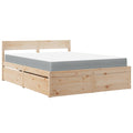 Featuring a simple yet timeless design, this bed is meant to make a truly practical and decorative addition to your bedroom. Solid pine wood: Solid pine wood is a beautiful natural material. Pine wood has a straight grain, and the knots give the material its signature, rustic look.Durable fabric: The fabric features a simple and clean look, and is breathable and durable.Pocket spring mattress: This pocket sprung mattress has individual pocket springs that work independently to provide personalised support by reacting only to pressure in each area. This design prevents "roll-together" and reduces motion transfer compared to traditional open coil mattresses. Each pocket spring supports the body individually.Storage function: The included bed drawers provide ample storage space for storing your essentials, keeping your room clean and tidy.Slats for optimal support: The bed frame is complete with slats to offer essential support and breathability to your mattress. Good to know:For hygiene reasons, the mattress cannot be returned if the packaging is removed or opened.