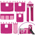 This wooden bunk bed is elegant and functional, making it a perfect addition to any room with limited space. Solid pine wood: This bunk bed is made of solid pine wood for stability and durability. Pine wood has a straight grain, and the knots give the material its signature, rustic look.Great fun: You can combine the curtains with the low bunk bed to create your child's secret base, providing great fun at bedtime and adding a focal point to the bedroom!Safety guardrails: The top bunk comes with safety guardrails on all 4 sides, so your child can sleep without worrying about falling off.Convenient ladder and slide: This double bunk bed has a fun slide that brings joy and turns their room into an indoor playground. The combination of a climbing ladder and slide makes bedtime livelier and more interesting for children.Sturdy slats: The plywood slats provide good weight distribution, ensuring that the mattress stays in place with every twist and turn of your body during sleep. Good to know:A mattress is not included with this bed. We do offer a various selection of mattresses. You can check our shop for a matching mattress. Warning:To prevent it from tipping over, this product must be used with the provided wall attachment device.