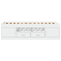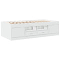 This versatile day bed can be used not only as a bed in the bedroom but also as a sofa in the living room. It will suit your different needs perfectly, providing you with plenty of space for sleeping or resting. Solid construction: This day bed sofa has a sturdy frame made of engineered wood. The engineered wood is of exceptional quality with a smooth surface and features strength, stability and resistance to moisture.Storage function: The included bed drawers provide ample storage space for storing your essentials, keeping your room clean and tidy.Sturdy slats: The plywood slats provide good weight distribution, ensuring that the mattress stays in place with every twist and turn of your body during sleep. Good to know:A mattress is not included with this bed. We do offer a various selection of mattresses. You can check our shop for a matching mattress.