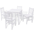This wooden dining set, consisting of a table and four chairs, has an understated, timeless design and will add a touch of style to your interior. Made of high-quality pinewood, the dining table and chairs are very stable and durable. This dining set is easy to clean with just a damp cloth. Assembly is really easy. Delivery includes 1 table and 4 chairs.