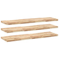 Transform your bare wall into a design accent and a practical, space-efficient storage area for your living space with these wooden floating shelves! Robust and stable material: Solid acacia wood is known for its strength and durability. Its diverse colours and unique grain patterns give it an attractive appearance. With excellent stability and resistance to weathering, it is ideal for crafting indoor and outdoor furniture.Untreated surface: This shelf board is made of untreated acacia wood, and you can keep its natural colour or customise it with paint or lacquer to suit your preference.Randomly DIY: You can arrange the shelves in a random pattern, like right-left, upper-down, or in a ladder-like design. By using more wall shelves, you can create unique and personalised patterns.Space saving: This floating shelf maximises unused wall space, converting it into a compact and efficient storage area.Wide applications: This versatile wall-mounted shelf can be used in various settings, such as kitchen, bathroom, living room, bedroom, study, garage, etc. Good to know:Each item is unique with variations in colours and grains. The delivery is random, ensuring the exclusivity and individuality of your product.The delivery includes wall shelves only. Screws and brackets are not included in the delivery.