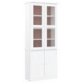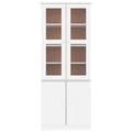 This wooden glass display cabinet provides an ideal solution for organising your collections and will add a touch of rustic charm to your interior. Solid pine wood: Solid pine wood is a beautiful natural material. Pine wood has a straight grain, and the knots give the material its signature, rustic look. Made of solid pine wood, the display cabinet is durable and sturdy.Ample storage space: Equipped with shelves, this cabinet with glass doors provides ample space for keeping your collection of cups, dishes, and small decorative items well-organised.Practical doors: Keep your space clutter-free by hiding your collections behind the doors of the glass cabinet.Easy to maintain: The display cabinet with glass doors is easy to clean with a damp cloth and requires less maintenance.Wooden knobs: The shelf cabinet comes with wooden knobs that make it easy to open and close the vitrine cabinet while adding extra beauty. Warning:To prevent it being overturned, this product must be used with the provided wall attachment device.
