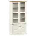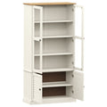 This wooden glass display cabinet provides an ideal solution for organising your collections and will add a touch of rustic charm to your interior. Solid pine wood: Solid pine wood is a beautiful natural material. Pine wood has a straight grain, and the knots give the material its signature, rustic look. Made of solid pine wood, the display cabinet is durable and sturdy.Ample storage space: Equipped with shelves, this cabinet with glass doors provides ample space for keeping your collection of cups, dishes, and small decorative items in good order.Easy to maintain: The glass cabinet is easy to clean with a damp cloth and requires less maintenance.Metal knobs: The display cabinet with glass doors comes with metal knobs that make it easy to open and close the shelf cabinet while adding to the extra beauty. Warning:To prevent it being overturned, this product must be used with the provided wall attachment device.