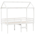 This high sleeper bed, with versatility at the heart of its design, is a perfect combination of sleek, modern styling and practicality. It is ideal for small rooms. Solid pine wood: Solid pine wood is a beautiful natural material. Pine wood has a straight grain, and the knots give the material its signature, rustic look.Practical function: The loft bed offers a great way to utilise floor space in your child's bedroom, you can combine it with a cool game curtain, game mattress and shed panel as a play corner or use the area underneath for storage. The plywood slats provide additional support for your bed. It extends the lifetime of your mattress by absorbing most of the stress and weight on the bed.Safe design: The high bed's built-in ladder makes climbing in and out of bed easy, and guardrails ensure your young ones stay safe while they slumber.Great fun: By combining the roof with your child's bed, you can create a hideaway that offers your kid lots of bedtime fun. This innovative addition will not only be a thrilling focal point but will also bring wonder and excitement to the kids' room.Open side door: The roof features an open side door, providing easy access for your kids to get in and out of bed. Good to know:A mattress is not included with this bed. We do offer a various selection of mattresses. You can check our shop for a matching mattress.