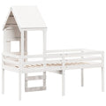 This high sleeper bed, with versatility at the heart of its design, is a perfect combination of sleek, modern styling and practicality. It is ideal for small rooms. Solid pine wood: Solid pine wood is a beautiful natural material. Pine wood has a straight grain, and the knots give the material its signature, rustic look.Practical function: The loft bed offers a great way to utilise floor space in your child's bedroom, you can combine it with a cool game curtain, game mattress and shed panel as a play corner or use the area underneath for storage. The plywood slats provide additional support for your bed. It extends the lifetime of your mattress by absorbing most of the stress and weight on the bed.Safe design: The high bed's built-in ladder makes climbing in and out of bed easy, and guardrails ensure your young ones stay safe while they slumber.Great fun: By combining the roof with your child's bed, you can create a hideaway that offers your kid lots of bedtime fun. This innovative addition will not only be a thrilling focal point but will also bring wonder and excitement to the kids' room.Open side door: The roof features an open side door, providing easy access for your kids to get in and out of bed. Good to know:A mattress is not included with this bed. We do offer a various selection of mattresses. You can check our shop for a matching mattress.