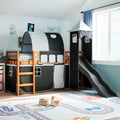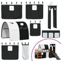 This kids' loft bed is crafted from solid pine wood and is designed for entertaining as well as optimising space. Stable and long-lasting frame: Solid pinewood is known for its strength and durability. Its straight grains and distinctive knots contribute to its rustic charm.Great fun: You can combine the curtains, tunnel, and tower with the loft bed frame to create your child's secret base, providing great fun at bedtime and adding a focal point to the bedroom!Safety guardrails: The single loft bed comes with safety guardrails on all 4 sides, so your child can sleep without worrying about falling off.Convenient ladder and slide: This children's mid sleeper bed has a fun slide that brings joy and turns their room into an indoor playground. The combination of a climbing ladder and slide makes bedtime livelier and more interesting for children. Slatted base for optimal support: The bed frame is equipped with a slatted base for support and breathability for your mattress. Good to know:A mattress is not included with this bed. We do offer a various selection of mattresses. You can check our shop for a matching mattress. Warning:To prevent it from tipping over, this product must be used with the provided wall attachment device.