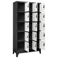 This locker cabinet has a modern design, which will make a great decorative addition to any room or office space. This storage cabinet is made of steel, making it durable as well as easy to clean. Each compartment is euippped with a lockable door with air vents. The cabinet has ample storage space for keeping clothes and other personal belongings safe. Additionally, the name tag holder allows you to neatly sort your items. This locker is suitable for schools and offices to store various things.