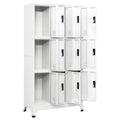 This locker cabinet has a modern design, which will make a great decorative addition to any room or office space. This storage cabinet is made of steel, making it durable as well as easy to clean. Each compartment is euippped with a lockable door with air vents. The cabinet has ample storage space for keeping clothes and other personal belongings safe. Additionally, the name tag holder allows you to neatly sort your items. This locker is suitable for schools and offices to store various things.