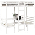 vidaXL Loft Bed Frame with Desk and Chairs White 90x190cm Solid Wood Pine