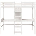 This versatile loft bed integrates a single bed with desks and shelves, providing a cosy sleeping space, a spacious work area, and an effective storage solution. It is an ideal choice for homes with limited space. Stable and long-lasting frame: Solid pinewood is known for its strength and durability. Its straight grains and distinctive knots contribute to its rustic charm. Maximise space utilisation: This bed frame features two desks and two shelves underneath, effectively utilising the under-bed space to provide ample storage for daily items while creating a cosy space for working and studying. It is an ideal choice for smaller or more confined areas. Easy to climb up and down: This bed frame features a built-in ladder, providing convenient access for users to climb up and down. Guardrails for enhanced safety: This bed frame is equipped with guardrails to prevent you from falling out of bed while sleeping. Slatted base for optimal support: The bed frame is equipped with a slatted base for support and breathability for your mattress. Warning: To prevent it from tipping over, this product must be used with the provided wall attachment device. Good to know: A mattress is not included with this bed. We do offer a various selection of mattresses. You can check our shop for a matching mattress. Screws and plugs for inside the wall are not included. We advise to find and use screws and plugs suitable specifically for your walls. If you're not sure, you can consult with a professional. Please read and follow each step of the instructions.