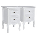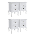 This set of 4 vintage style nightstands comes with full-sized drawers so that your bedside essentials will never be beyond reach. Each piece has two drawers. The clear-lacquered real wood drawer sides make this nightstand even more elegant. The bedside table is finished in durable white MDF. It also features tapered cabinet legs and brushed nickel knobs. Delivery includes four bedside cabinets. Please note that: since this furniture is made of wood and painted white, and it is hand-crafted as well, it may come with a small defect.