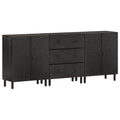 These side cabinets, featuring a timeless look, are meant to be an excellent addition to your home. Solid mango wood: Solid mango wood is a strong, tropical hardwood that makes sturdy furniture. Its beautiful wood grains make every piece of furniture slightly different from the next. Made of solid mango wood, the cabinet is durable and stable.Ample storage space: The cupboard offers ample storage space for keeping your various daily essentials well-organised and within easy reach.Displaying function: The top of the storage cabinet is great for displaying your decorative items, photo albums or small plants.Sturdy legs: The iron legs add the side board's sturdiness and stability. Warning:To prevent it from tipping over, this product must be used with the provided wall attachment device.