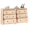 Enjoy a tidy living room with this wooden sideboard! This practical sideboard will satisfy your various requirements and make an ideal complement in your room. Solid pine wood: Solid pine wood is a beautiful natural material. Pine wood has a straight grain, and the knots give the material its signature, rustic look.Ample storage: The cabinet provides ample storage space for keeping your various daily essentials well organised and within easy reach.Sturdy top: The sturdy top of the sideboard cabinet is ideal for displaying decorative objects, photo frames, or potted plants. Warning:In order to prevent overturning, this product must be used with the wall attachment device provided. Note:Each product comes with an assembly manual in the box for easy assembly.The sideboard is made up of two small sideboards.