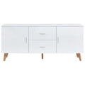 Featuring a modern and practical design, this striking sideboard will become the focal point of your living room! Made of MDF and wooden legs, this sideboard is highly sturdy and durable. Its elegant design will make it a user-friendly and extraordinarily decorative addition to your home. The side cabinet has 2 drawers and 2 storage compartments, providing ample space for keeping all kinds of smaller items like keys, notepads, pens, as well as other knick-knacks organised and within reach. Additionally, the large top is ideal for placing multimedia appliances or for displaying ornamental objects. It can be used as a cabinet, side cabinet, etc. The cabinet is easy to assemble.