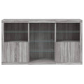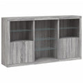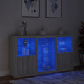 Decorate your room with this modern sideboard with LED lights, it easily blends with furniture in any style at your house. Durable material: The engineered wood is of exceptional quality with smooth surface and also features strength, stability and resistance to moisture.RGB LED lights: The buffet is equipped with vibrant RGB LED lights. With various customisable menus, you can effortlessly change the colour of the lights and even set them to adjust automatically. These LED lights not only enhance the contemporary look of the sideboard cabinet but also add to its trendy appeal.Ample storage space: The storage cabinet offers plenty of space to keep your everyday items neatly arranged and easily accessible.Displaying function: The sturdy top of the hallway cabinet is ideal for displaying decorative objects, photo frames, or potted plants.Practical doors: Keep your essentials free from dust by hiding them behind the doors of the side cabinet. Good to know:The product has a USB connector that requires a certified 5V USB power source (not included). Warning:To prevent it being overturned, this product must be used with the provided wall attachment device.