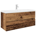 This stylish sink cabinet with a built-in basin and faucet, featuring spacious storage space, is an excellent addition to your bathroom, giving it a tidy and striking appearance! Sturdy material: The under sink cabinet is made of, that is of exceptional quality with smooth surface and also features strength, stability and resistance to moisture.Ample storage: The bathroom sink unit features a drawer, offering ample storage space to store items in your bathroom.Practical design: The top of this bathroom cabinet is ideal for placing the sink.Wall-mounted function: The bathroom cabinet can be wall-mounted to add extra storage space. That way, you can maximise your floor space and keep the area clean.Overflow function: An overflow is also equipped to flow water out when it gets too full. Good to know:Screw(s) and plug(s) for inside the wall are not included. Seek and use screw(s) and plug(s) suitable for your walls. If you are uncertain, seek professional advice. Read and follow each step of the instruction carefully.The faucet and push drainer with overflow function are included.The tap is a hot and cold tap, and if you have a need for hot water, a water heater must be connected.