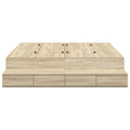 This storage bed frame in Sonoma oak is a smart choice for modern bedrooms, combining style with practicality. Its minimalist design suits adults looking to keep their space tidy and organised, providing plenty of storage while looking good. This bed frame has a modern look, mixing simplicity with functionality to enhance any bedroom decor, while its Sonoma oak finish brings a nice contemporary feel, ensuring it fits right into your space. With plenty of built-in storage drawers, this bed frame helps keep your bedroom tidy. You can easily tuck things away, perfect for those tight on space. Made of durable engineered wood, the frame can support up to 200 kg, making it strong enough for daily use. The smooth surface not only looks good but also resists minor wear and tear, helping your bed frame last through many years. Assembly is easy with all tools included; typically, two people can get it set up in no time, making it a quick addition to your home.