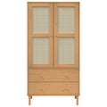 This classic wooden wardrobe offers ample storage space to keep your clothes, shoes and accessories neatly organised. Solid pine wood: Solid pine wood is a beautiful natural material. Pine wood has a straight grain, and the knots give the material its signature, rustic look.UV varnish: UV varnish is a special type of varnish that's finished using an ultraviolet drying machine. It creates a more vivid, more luxurious and more tactile finish when compared to non-UV varnishes.Ample storage space: This closet organiser has 2 drawers and 4 compartments with doors, offering you ample storage space for your clothes or accessories, such as hats, handbags, etc.Rattan look surface: The storage cabinet's door surface is handcrafted from poly rattan, a two-tone blend of midcentury modern and boho that adds a cozy yet stylish touch to your space. Warning:To prevent it being overturned, this product must be used with the provided wall attachment device.