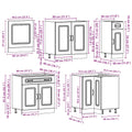This 11-piece kitchen cabinet set, with its elegant design, optimises your kitchen space and provides ample storage space for your personal belongings! Stable and durable material: Engineered wood is a durable and stable material with a smooth surface that is resistant to moisture, warping, and splitting, making it a reliable choice for a variety of projects.Ample storage space: The kitchen cabinet set has many compartments, and offers sufficient space to store bowls, plates, pots, and other kitchen appliances.Adjustable feet: The bottom cabinets feature adjustable feet that can be adjusted in height to suit your kitchen layout.Easy to maintain: Thanks to its smooth surface, these kitchen cabinets are easy to clean with a damp cloth and require less maintenance. Warning:To prevent it from tipping over, this product must be used with the provided wall attachment device. Good to know:Screw(s) and plug(s) for inside the wall are not included. Seek and use screw(s) and plug(s) suitable for your walls. If you are uncertain, seek professional advice. Read and follow each step of the instruction carefully.The worktop, sink and faucet are not included in the delivery.