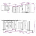 This 11-piece kitchen cabinet set, with its elegant design, optimises your kitchen space and provides ample storage space for your personal belongings! Stable and durable material: Engineered wood is a durable and stable material with a smooth surface that is resistant to moisture, warping, and splitting, making it a reliable choice for a variety of projects.Ample storage space: The kitchen cabinet set has many compartments, and offers sufficient space to store bowls, plates, pots, and other kitchen appliances.Adjustable feet: The bottom cabinets feature adjustable feet that can be adjusted in height to suit your kitchen layout.Easy to maintain: Thanks to its smooth surface, these kitchen cabinets are easy to clean with a damp cloth and require less maintenance. Warning:To prevent it from tipping over, this product must be used with the provided wall attachment device. Good to know:Screw(s) and plug(s) for inside the wall are not included. Seek and use screw(s) and plug(s) suitable for your walls. If you are uncertain, seek professional advice. Read and follow each step of the instruction carefully.The worktop, sink and faucet are not included in the delivery.