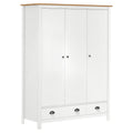 The modern wooden wardrobe is designed to be a timeless addition to your interior decor. The wardrobe, made of solid pinewood, is very sturdy. The clothes cabinet has 2 drawers and 5 shelves, providing ample space for keeping smaller items organised and within reach. It has a large compartment equipped with a hanger bar so you can use it to hang trench coats, dresses, etc. The closet is easy to assemble. The bedroom cabinet is also easy to clean with a dry cloth.