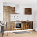 This 7-piece kitchen cabinet set, with its elegant design, optimises your kitchen space and provides ample storage space for your personal belongings! Stable and durable material: Engineered wood is a durable and stable material with a smooth surface that is resistant to moisture, warping, and splitting, making it a reliable choice for a variety of projects.Ample storage space: The kitchen cabinet set has many compartments, and offers sufficient space to store bowls, plates, pots, and other kitchen appliances.Adjustable feet: The bottom cabinets feature adjustable feet that can be adjusted in height to suit your kitchen layout.Easy to maintain: Thanks to its smooth surface, these kitchen cabinets are easy to clean with a damp cloth and require less maintenance. Warning:This product must be secured by installing a worktop. Good to know:Screw(s) and plug(s) for inside the wall are not included. Seek and use screw(s) and plug(s) suitable for your walls. If you are uncertain, seek professional advice. Read and follow each step of the instruction carefully.The worktop, sink and faucet are not included in the delivery.