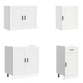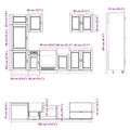 This 7-piece kitchen cabinet set, with its elegant design, optimises your kitchen space and provides ample storage space for your personal belongings! Stable and durable material: Engineered wood is a durable and stable material with a smooth surface that is resistant to moisture, warping, and splitting, making it a reliable choice for a variety of projects.Ample storage space: The kitchen cabinet set has many compartments, and offers sufficient space to store bowls, plates, pots, and other kitchen appliances.Adjustable feet: The bottom cabinets feature adjustable feet that can be adjusted in height to suit your kitchen layout.Easy to maintain: Thanks to its smooth surface, these kitchen cabinets are easy to clean with a damp cloth and require less maintenance. Warning:To prevent it from tipping over, this product must be used with the provided wall attachment device. Good to know:Screw(s) and plug(s) for inside the wall are not included. Seek and use screw(s) and plug(s) suitable for your walls. If you are uncertain, seek professional advice. Read and follow each step of the instruction carefully.The worktop, sink and faucet are not included in the delivery.