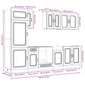 This 8-piece kitchen cabinet set, with its elegant design, optimises your kitchen space and provides ample storage space for your personal belongings! Stable and durable material: Engineered wood is a durable and stable material with a smooth surface that is resistant to moisture, warping, and splitting, making it a reliable choice for a variety of projects.Ample storage space: The kitchen cabinet set has many compartments, and offers sufficient space to store bowls, plates, pots, and other kitchen appliances.Adjustable feet: The bottom cabinets feature adjustable feet that can be adjusted in height to suit your kitchen layout.Easy to maintain: Thanks to its smooth surface, these kitchen cabinets are easy to clean with a damp cloth and require less maintenance. Warning:To prevent it from tipping over, this product must be used with the provided wall attachment device. Good to know:Screw(s) and plug(s) for inside the wall are not included. Seek and use screw(s) and plug(s) suitable for your walls. If you are uncertain, seek professional advice. Read and follow each step of the instruction carefully.The worktop, sink and faucet are not included in the delivery.