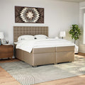 Use this box spring bed to enjoy a restful night's sleep! It offers you maximum relaxation and pleasant sleep. Long-lasting and easy maintenance: Faux leather is a highly durable material that is resistant to stains, making it easy to clean with just a damp cloth. Its smooth surface gives it an elegant look that resembles real leather.Pocket spring mattress: This pocket sprung mattress has individual pocket springs that work independently to provide personalised support by reacting only to pressure in each area. This design prevents "roll-together" and reduces motion transfer compared to traditional open coil mattresses. Each pocket spring supports the body individually.Height-adjustable headboard: The headboard is adjustable in height to suit your preference.Comfortable mattress topper: This mattress topper enhances support and comfort with its soft, breathable surface while extending the life span of your mattress. Its removable cover allows for easy washing, making maintenance a breeze.Slats for optimal support: The bed frame is complete with slats to offer essential support and breathability to your mattress. Good to know:For hygiene reasons, the mattress cannot be returned if the packaging is removed or opened.